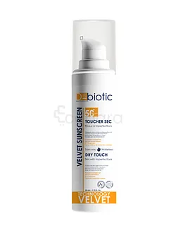D-Biotic Velvet Sunscreen offre une protection avancée contre les rayons UV grâce à son indice de protection solaire (SPF) élevé de 50+, toucher sec, sans eau.